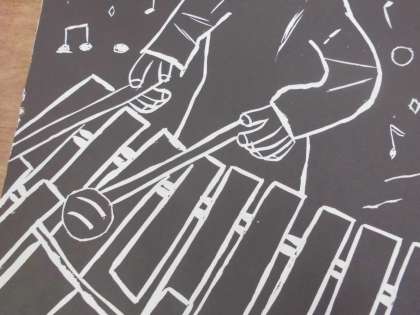 彫刻刀を使った版画が仕上がりました。14日(木)から始まる校内版画展に向けて台紙に貼ったり名前を書いたりして準備していきます。楽器を演奏する自分を作品に表し、力作が出来上がりました。