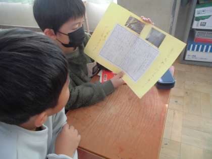 国語の学習で伝統工芸のよさを調べてリーフレットにまとめました。完成したリーフレットを使って交流し、それぞれが調べた伝統工芸のよさを伝え合いました。