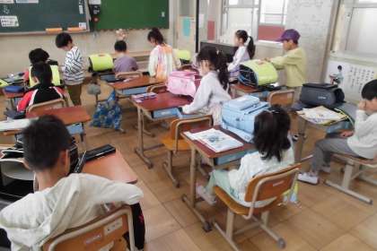 今日は、朝の用意を自分でしました。少しずつ慣れてきました。授業では、教科書を使っての学習を始めました。みんなやるき満々に楽しく学んでいます。