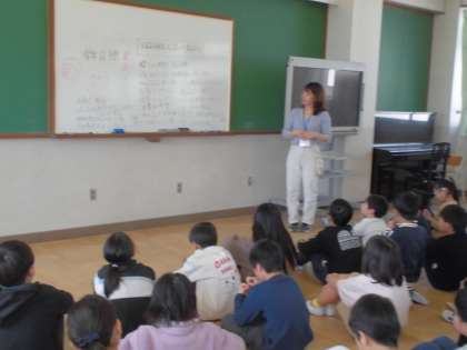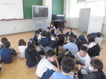 4年生の学年目標を考えるために学年集会を開きました。みんなが楽しく1年間を過ごすためにはどんなことを頑張ったらいいかを話し合って意見を出し合いました。「みんながハッピーになるために、明るく元気に過ごしたい。」「積極的に頑張りたい。」「個性を大切にしたい。」「みんなで心を合わせる。」など、大切なキーワードがたくさんあがってきました。みんなの気持ちを集約して学年目標を決定していきます。
