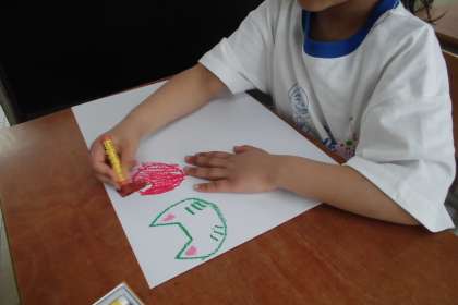 図工の学習では、好きな物をテーマに絵を描きました。思い思いに楽しく描きました。