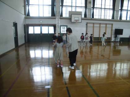中間休みには、体育館で「どん!じゃんけんぽん!」をしました。元気いっぱいに遊びました。