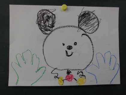 好きなものは,それぞれ「はらぺこあおむし」「うさぎとねこ」「ミッキーマウス」でした。3人ともがんばって描きました。