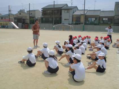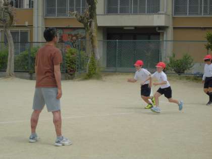 体育の学習では早速50メートル走のタイムを計測しました。みんな、ゴールめがけて力いっぱい走りました。
