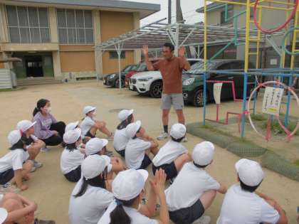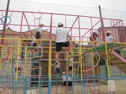 総合遊具の安全な使い方を学習しました。三点支持や、周りに気を付けて楽しく安全に使えるように大切なポイントを意識して活動しました。