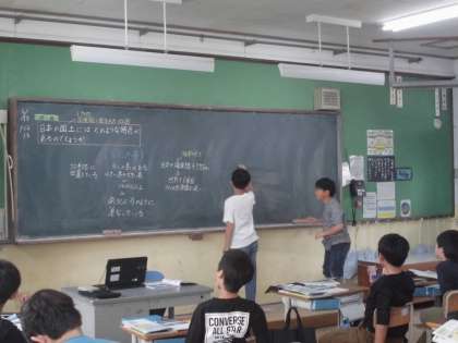 調べて分かったことを交流しています。