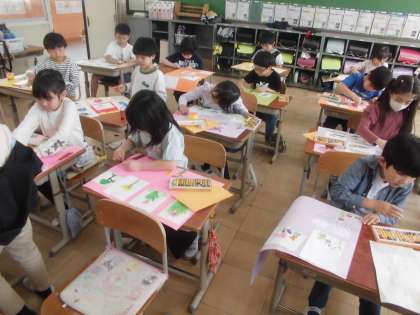 春らしい作品が出来上がったので、「教室に掲示すると、パーッと明るくなりそう!」とワクワクしました。