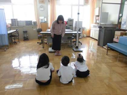 今年度初めての身体計測がありました。1年生が入学してきてくれたので、身体計測の仕方の説明が養護教諭の先生からありました。初めての1年生も落ち着いて計測することができました。