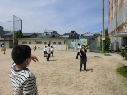 朝会で紹介があったので、早速中間休みにグローブを使って遊んでいました。