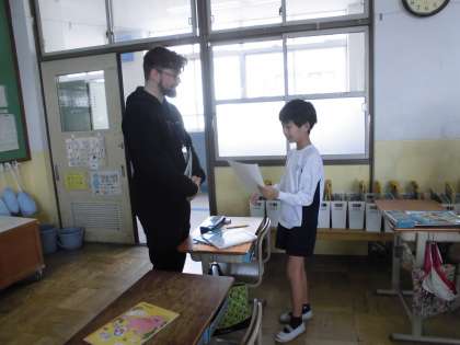 今日はその発表に向けて文や発音を確認しました。言いたいことがわからない時や、知らない単語はジョーイ先生がわかりやすく教えてくれました。