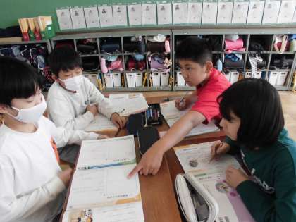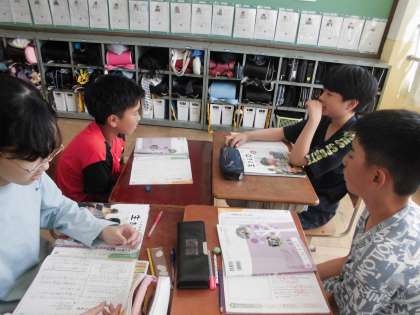 道徳では「言葉のおくりもの」という学習をしました。誰にでもわけ隔てなく接することのできる主人公の姿から、自分も主人公のように友達に接していきたい、大切なことは態度ではなく言葉で伝えていくことが大事など、いろいろな思いをもっていました。友達と交流することで、色々な見方や考え方と触れ、思いを深めることができました。