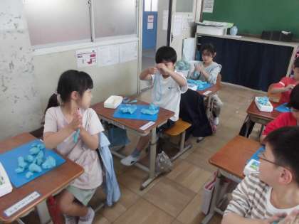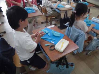 「ねんどでごちそう なにつくろう」の学習の様子です。工夫して、作成していました。「パーティーだ!」と喜んでいました。