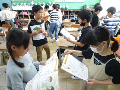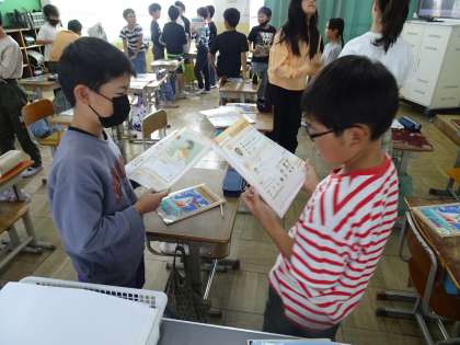 外国語の授業の様子です。この日は自分の名前のつづりや好きなスポーツや教科を伝え合いました。自分からコミュニケーションをしようと話しかけている人が多くてよかったです。この調子で英語を好きになってほしいと思います。