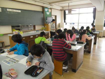 1組は,理科室で天気の学習です。雲の種類について勉強していました。いろんな雲があるんだね。