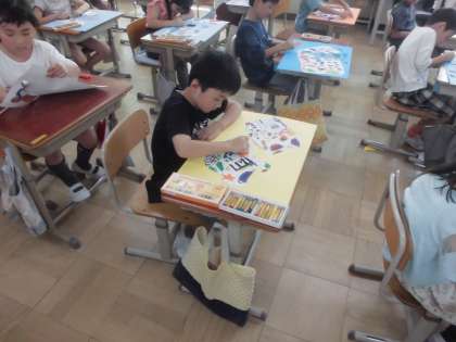 一人ひとりが、自分だけのたまごの形や割れ方、飛びだしてくるものを表現できていました。作品は次回の参観ときに教室に掲示する予定ですのでお楽しみに。