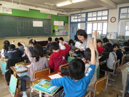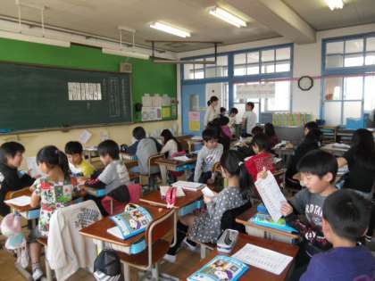 参観日2 公開日 2012/04/18 更新日 2012/04/18 教頭先生から 次は5年生。 1組も2組も,音読するときに大切なことを学習していました。どちらのクラスも,楽しい雰囲気で授業が進められていました。