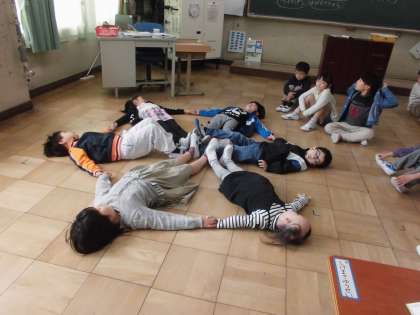 1年生との交流学習,音楽「うたっておどってなかよくなろう」「ひらいたひらいた」の学習では、歌詞に合わせて体を動かしました。どんな動きをしたらいいか班の友達と相談して考えていました。3組の友達も一緒に相談することができていました。最後は班ごとに発表しました。とても楽しく学習することができました。