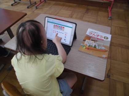 算数「いくつといくつ」の学習では、教科書のQRコードをGIGA端末で読み込んで学習しました。楽しく学習することができました。