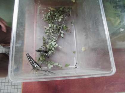 子ども達が毎日楽しみにしていたアゲハチョウが朝飛び立ちました。さなぎになって約2週間。アゲハチョウが見えなくなるまで様子を見守っていました。待ち続けたかいがありました。