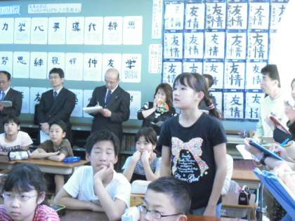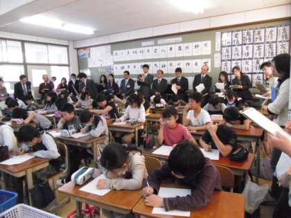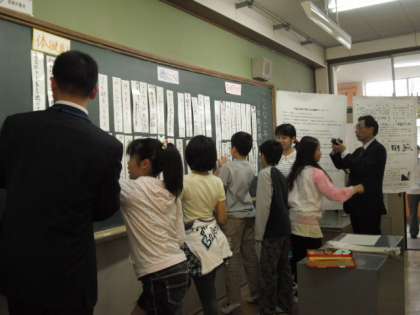 6年1組で学級目標を決める授業がありました。文部科学省初等中等教育局教育課程課教科調査官 杉田 洋先生をお迎えし,教育委員会や他校からもたくさんの先生方が参観されました。子どもたちは,1時間あまりの時間をかけて,どんなクラスにしたいかを話し合いました。