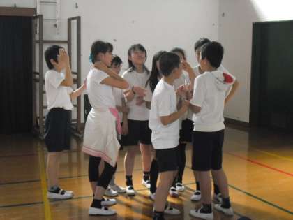 体育館を覗いてみると,バスケットボール部と卓球部が,活動の計画について話し合っていました。今年はクラブ活動ノートを活用しながら話合い,よりよいクラブ活動にしていこうと,どのクラブも取り組み始めています。1年間みんなで楽しく活動できるようがんばってください。