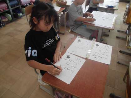 書写の時間にフェルトペンを使った硬筆書写をしました。