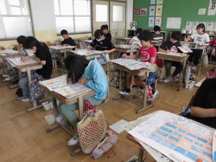 図画工作科「わたしの大切な風景」の学習では、色塗りの段階に入りました。