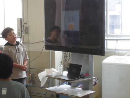 家庭科室でもコードを駆使してパソコンを繋いで給食クイズを出していました。