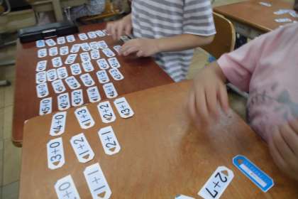 計算カードでどんどん足し算の練習をしています!算数の時間には、ペアで協力して問題を出し合ったり、仲間分けをしたりしています。また、すき間時間にもどんどん計算カードで練習をしています。宿題でも頑張って取り組んでくれていることと思います。