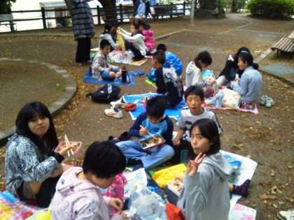 天文科学館の隣の公園でお弁当タイムです。