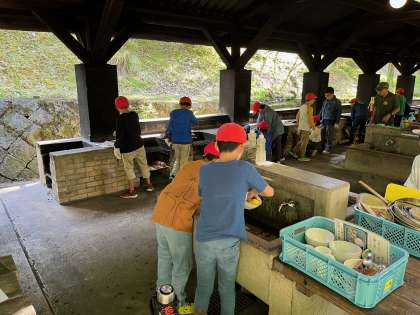いよいよ野外炊事1回目が始まりました。班ごとで役割分担し、協力してカレーライスを作り上げます。