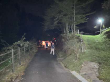 班にひとつランタンの灯りを持って進みます。