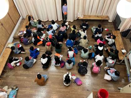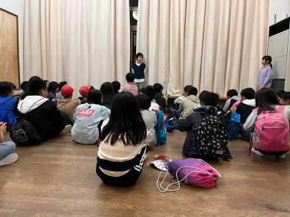 ナイトハイクからもどりました。ランタンの灯りを頼りに夜の道を歩きました。この後、ふりかえりを始めます。