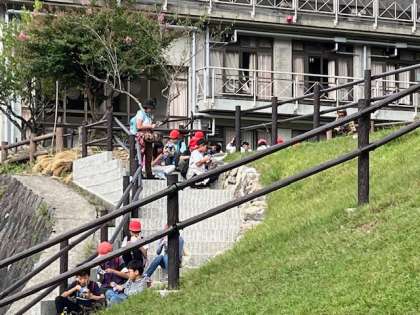 冒険の森での活動が終わり、おやつタイムでアイスクリームを食べました。