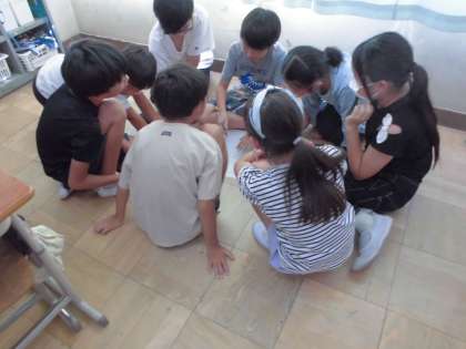 「地球温暖化をくいとめよう」をテーマに1学期から学習を進めて、夏休み中に「エコライフチャレンジ」に取り組みました。エコライフの取組を振り返り、学習は次の段階に入りました。「自分たちだけで終わらせるのではなくて、身近な人にも知らせて、広めていこう。」と計画を立てて、グループごとに計画を立てて学習を進めています。
