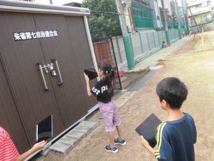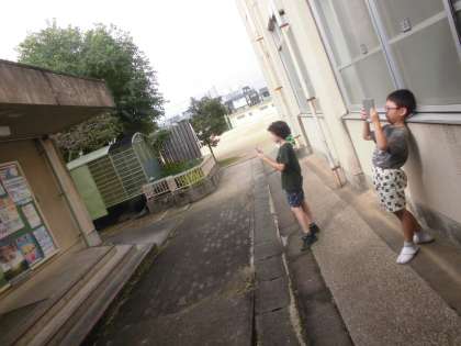 子どもたちは学校中を探してまわり、消火栓や教室の扉など、顔にみえるものをたくさん見つけてきました!なかにはコンセントや運動場の印が顔にみえると写真を撮ってきた子もいました。
