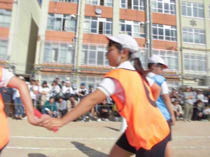 中学年の競技はリレーです。クラスのみんながバトンをつないで、チームベストタイムを目指して走りました。念願の3分30秒を切って3分28秒をマークしたチーム、第1回目の記録からなんと15秒も記録を縮めたチームと、本番でベストを尽くすことができました。競技を終えた子どもたちの表情は充実感で輝いて見えました。