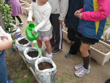 一人一袋,ちゃんと名前を書いて,水もしっかりやりました。自分のインゲン豆なので,きっと大事に育てることでしょう。おいしい豆ができますように!