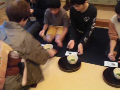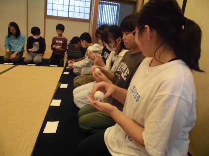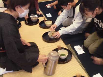 先日茶道体験に参加しました。社会の授業で室町時代について学習し、その中で「茶の湯」についても調べていました。