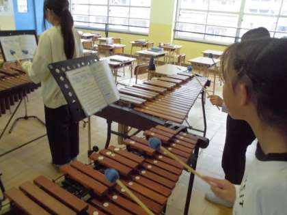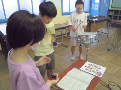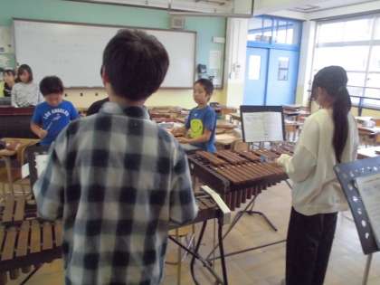 合奏の練習をしています。音楽の教科書に載っている「鉄腕アトム」。学習発表会に向けて練習中です。