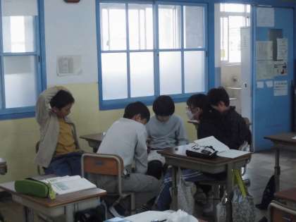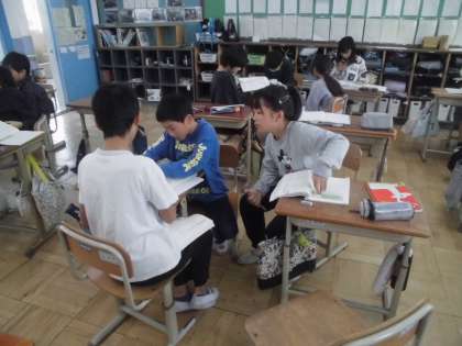 筆者の考え(主張)や文章構成について話し合っています。