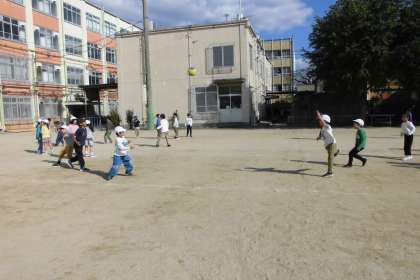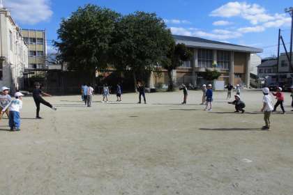 休み時間には、声を掛け合ってドッジボールをしていました。ボールを譲り合いながら楽しんでいました。「みんなで遊ぶと楽しい!」と言っていました。