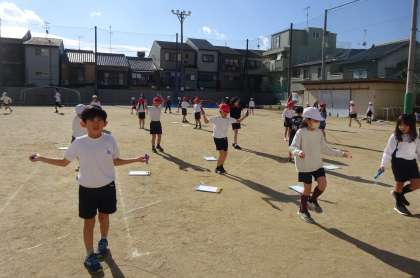 3学期初めての体育。今日は「なわとび」と「ゆっくりかけあし」を学年で一緒に行いました。