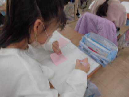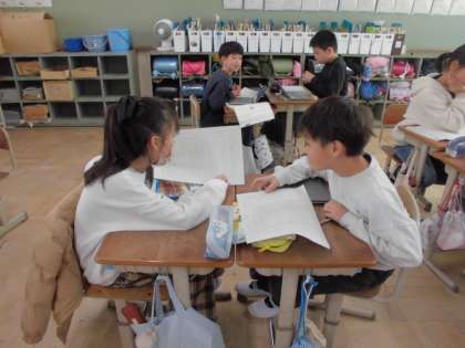 国語の学習では、いつ起こるかわからない自然災害について調べ、自分の考えを、理由や例えをはっきりさせて文章にまとめる学習をしています。今日は調べた情報を整理して、文章の組み立てを確かめました。