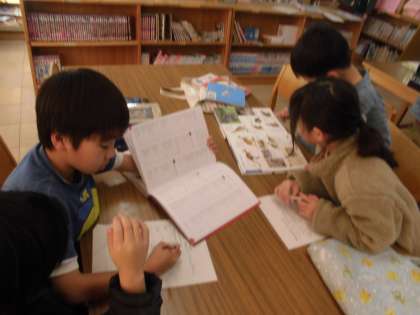 図鑑には目次や索引があり、これを使うことで探したいものが見つけられると知ることができました。最後には図鑑を使って動物や昆虫を探して調べました。ペアで協力して、索引から探しているものを見つけられていました!