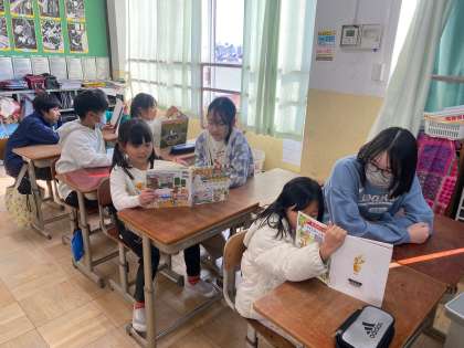 6年生のペアのために「どんな本がいいかな。」と選んでくれたり、読む練習をしてくれたり、準備をしてくれた1年生。ありがとうございました。とても楽しくほっこりとした時間を過ごさせてもらいました。