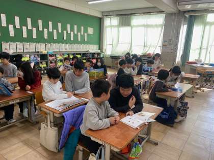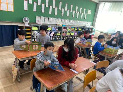1年生が上手に読み聞かせをしてくれるのを、真剣に聞いていました。
