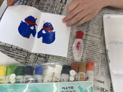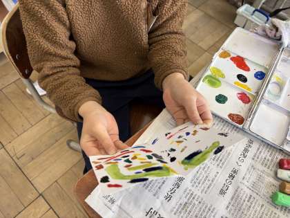 図画工作科の学習では、いろいろな表し方を試して「心の気持ちカード」をつくりました。