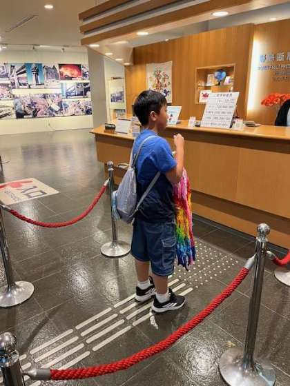 学校で祈りを込めて作成した千羽鶴を渡しました。
