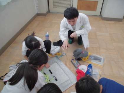 総合的な学習「まちくさみっけ」の学習の第1日目の様子です。まちくさ博士から、学習の進め方を教えていただきました。初めに、博士が撮影した「まちくさ」の写真を見て「まちくさ名前つけゲーム」をしました。グループで想像力を働かせて、1枚の写真からいくつもの名前を付けることができました。